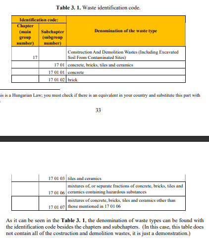 45/2004 tarihli ortak kanunun ekinde. BM-KvVM’nin kullanım kuralları hakkında inşaat ve yıkım atıklarını sıralayan bir atık kataloğu bulunabilir. atıklar (materyallerine göre) 8 gruba ayrılır (Tablo 3.2):