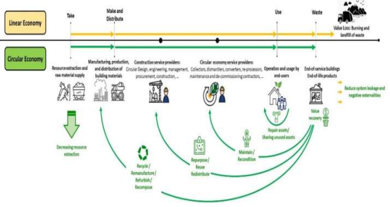 2. İnşaat tedarik zincirinde doğrusal ekonomiye karşı döngüsel ekonomi yaklaşımları.